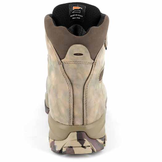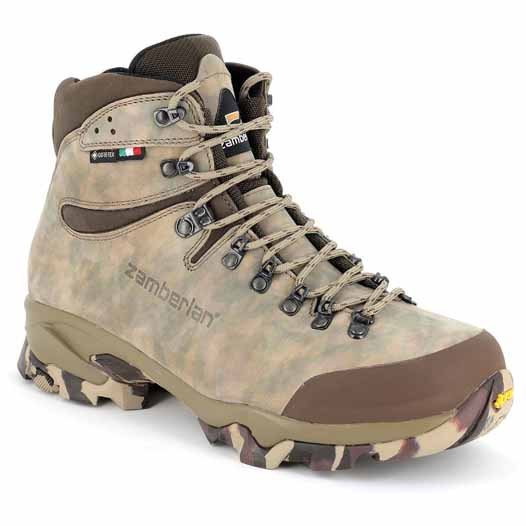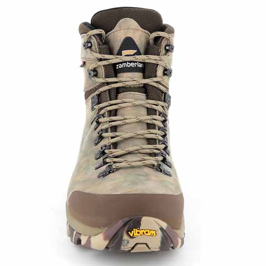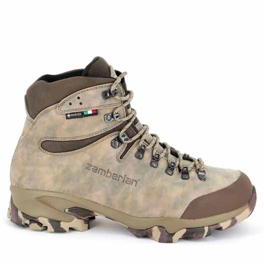 ▪ Cholewka wykonana jest z najnowszej skóry firmy Zamberlan z unikalną mieszanką kamuflażu. która podkreśla cały sprzęt myśliwski. od głowy po buty