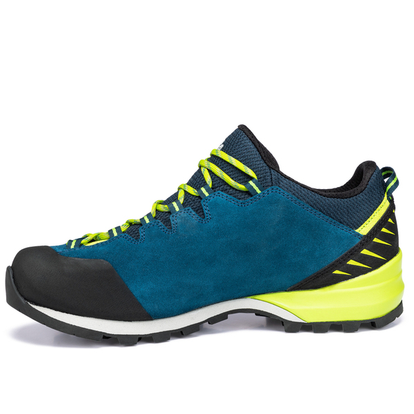Niska wersja Makra Pro GTX - Makra Pro Low GTX - to but startowy na wymagający teren. Ale co sprawia. że but jest dobry? Kluczowa jest wielofunkcyjność. Makra Pro Low GTX musi radzić sobie z różnymi rodzajami terenu. od trudnych szlaków po leśne drogi i zbocza pokryte rumowiskami skalnymi. Komfort. stabilność i elastyczność odgrywają ważną rolę. Jego lekka. ale niezwykle stabilna podeszwa środkowa wykonana jest z PU i EVA. Nadwymiarowa konstrukcja pięty z PU zapewnia doskonałą amortyzację. a wzmacniający klin z pianki PU na pięcie wspiera idealne toczenie. EVA w przedniej części stopy zapewnia większą precyzję. a nasza ekskluzywna podeszwa zewnętrzna Vibram „Makra” zapewnia doskonałą przyczepność. Szczególną cechą rodziny Makra jest zoptymalizowane sznurowanie Ghilly. które przechodzi przez pętle tekstylne aż do obszaru palców. Zapewnia to bezpieczne dopasowanie do przedniej części stopy i dobrą ogólną stabilność w przypadku modelu o średniej wysokości. Dzięki wodoodpornej membranie GORE-TEX ten but utrzyma Twoje stopy suche. gdy są mokre. Cholewka ze skóry Perwanger jest wytrzymała. oddychająca i trwała. To połączenie wysokiej jakości materiałów zapewnia niezawodną wydajność.