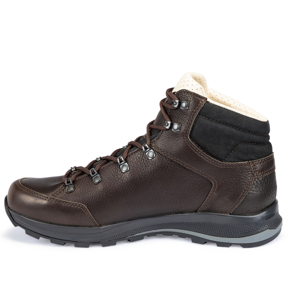 Całkowicie skórzany Travi Yak to wysokiej jakości. lekki but turystyczny. który sprawdzi się na średnio-trudnych wędrówkach w niższych partiach gór. Wykonany jest w 100% ze skóry jaka pochodzącej z mongolskich stad. Ze względu na trudne warunki. w jakich żyją te zwierzęta. skóra jaka ma gęstsze. bardziej włókniste ziarno i dlatego jest bardziej wytrzymała niż zwykła skóra bydlęca. Każdy kawałek skóry jaka ma unikalny i charakterystyczny wzór ziarna. który jest widoczny na zewnątrz buta. Jednak oprócz wytrzymałości i indywidualnego stylu. nacisk kładziony jest tutaj wyłącznie na wygodę. A to zależy od natury. Zaletą stosowania tej ekskluzywnej skóry jest to. że dzięki niej but wyjątkowo dobrze trzyma swój kształt. ale jest również niezwykle wygodny. Naturalnie oddychające właściwości tego materiału tworzą przyjemny klimat dla stóp. który pozwala na odprowadzanie wilgoci i „oddychanie” stopy. A ponieważ skórzana podszewka dopasowuje się do konturów stopy. dopasowanie z czasem tylko się poprawia. Skóra użyta do produkcji tego modelu spełnia rygorystyczne „złote standardy” Leather Working Group. wielostronnej organizacji non-profit odpowiedzialnej za certyfikację środowiskową dla przemysłu skórzanego. Całościowe połączenie sportowej podeszwy Endurance Hike. mocnej skóry jaka i wyjątkowego wyglądu sprawia. że jest to atrakcyjny wybór na relaksujące i wygodne wędrówki na łonie natury.